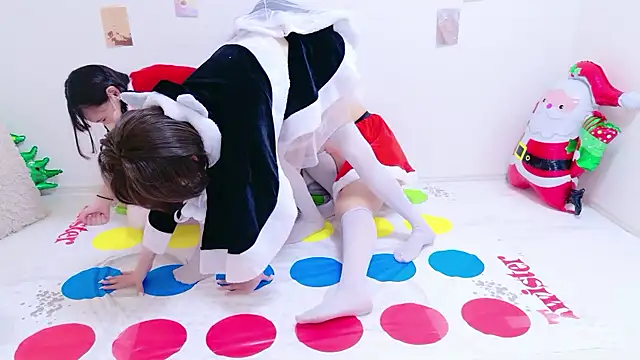 ラブンスツイスター❣ルーレットを回して転んだら1枚脱いでイクよ!👍